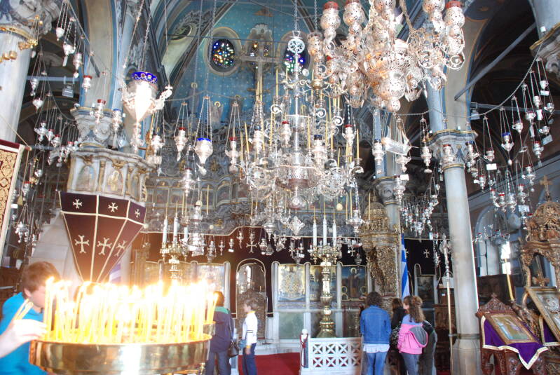 “Evangellistria” which was built for the miraculous icon “Megalochari”. It is the the aim of pilgrimage for Greek people from all over the world.